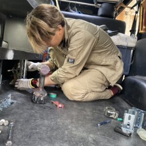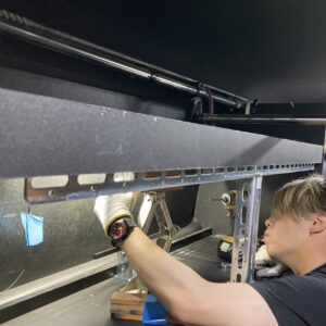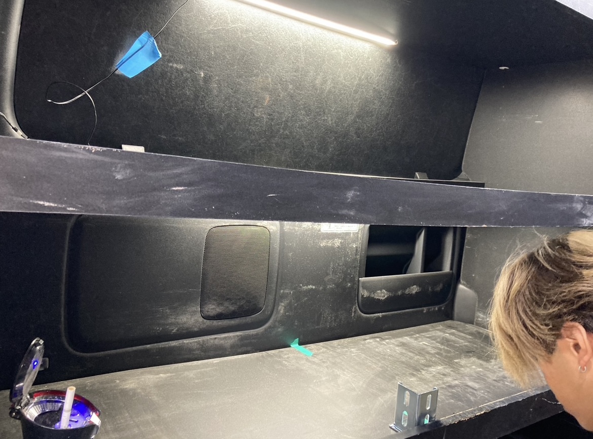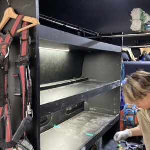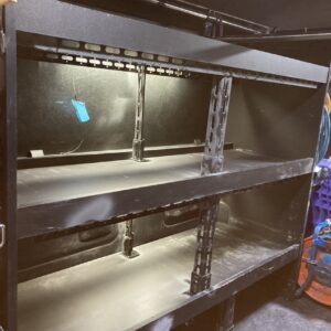 現場が空くなんて事があるがハイエースに取り付けてある既製品の棚の真ん中辺りが少し下がってる?
